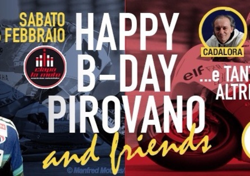 Sabato 6 Febbraio 2016, dalle ore 20.00 presso gli spazi di Motosplash, serata dedicata ai festeggiamenti del 56° compleanno di Fabrizio Pirovano. Vincitore del mondiale Supersport nel 1998, Fabrizio viene ricordato come uno dei piloti più rappresentativi del mondiale Superbike, inserito nella hall of fame del campionato.