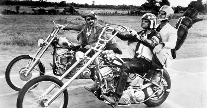 Ma se c’è un film che si associa alla Motocicletta questo è Easy Rider. 1969, Dennis Hopper, Peter Fonda, Jack Nicholson, gli Steppenwolf. Harley Davidson. Fate voi! Del tutto inutile soffermarsi per l’ennesima volta sui simbolismi del film, sulla sua valenza di rottura riferita a un’epoca e a una cultura chirurgicamente precise, al fatto che è tuttora, e per sempre, un monumento. Dirò che non è facile, oggi, seguirne le tracce, i richiami storici e di costume, di rottura, di senso di una libertà, tutti elementi raccolti e riproposti e abusati in troppi luoghi comuni. È tuttavia caldamente consigliato mettersi lì e godersi un capolavoro che ha cinquant’anni e che proprio in corrispondenza del compleanno ha perso uno dei suoi protagonisti, Peter Fonda.