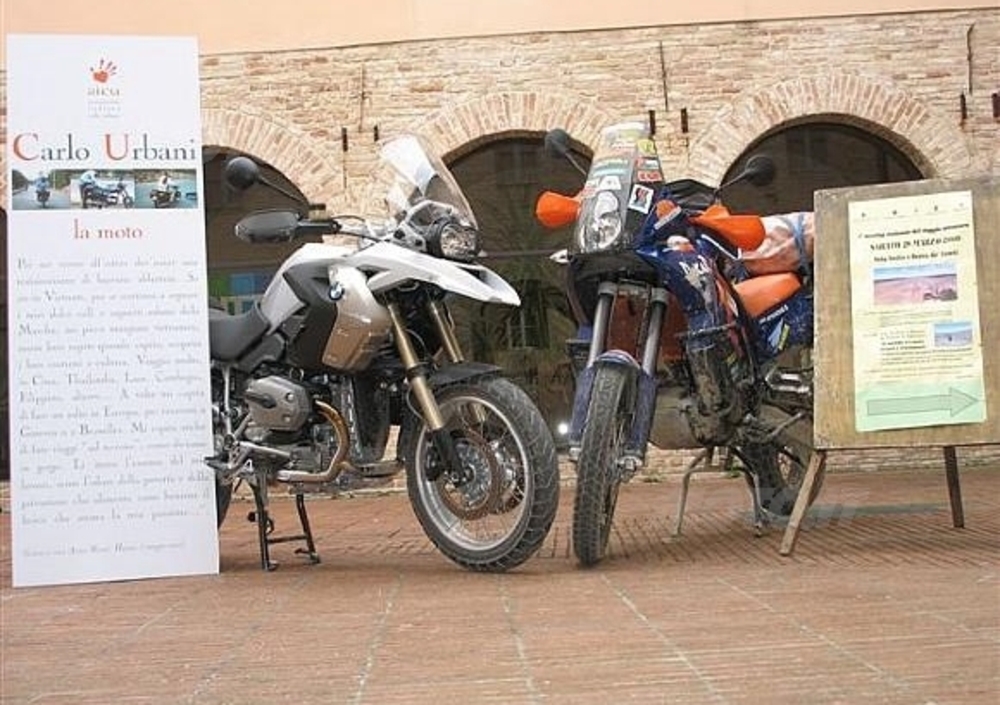 All'ingresso, nel Chiostro di S. Francesco, si aveva già un assaggio di cosa stava accadendo nella Sala Italia del Palazzo comunale, con in mostra le moto che accompagnano i viaggiatori che affrontano in autonomia (senza assistenza) i loro tour nei luoghi più remoti del pianeta.