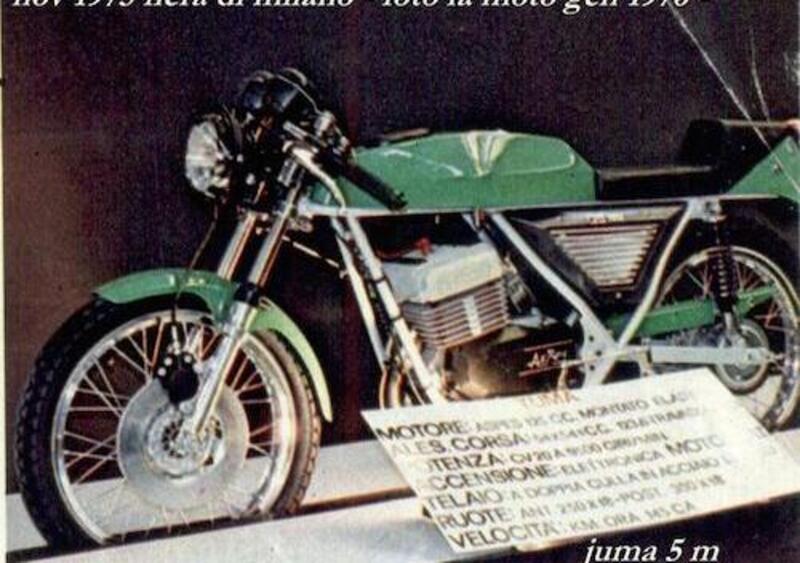 L’idea di una 125 cc stradale nasce in Aspes all’inizio degli anni settanta, grazie a Piermario Sorrentino, figlio del titolare della Casa di Gallarate. Insieme a Gianfranco Maestroni, tecnico in forza all’Aspes, crea nel 1971 una moto da competizione unendo un telaio in tubi al Cr-Mo a un motore preso da una Hopi da motocross, collaudata da Felice Agostini.