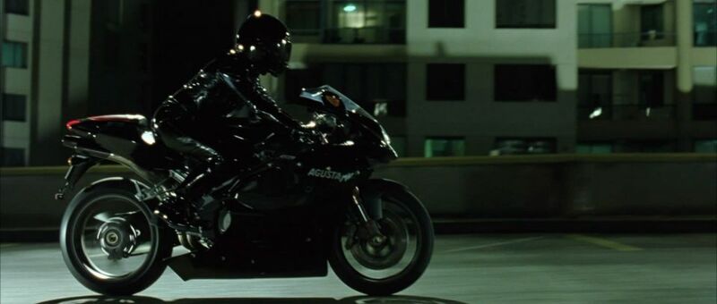 Nel primo episodio si intravede una Triumph Speed Triple 955 sulla quale Trinity si dilegua dalla scena in cui gli agenti catturano Keanu Reeves: giusto un “cameo” per i due fari tondi della tre cilindri inglese, che però si riconosce benissimo tanto per il primo piano che per l’inconfondibile rumore del tricilindrico in partenza.