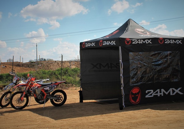 Il test del tendalino passa quindi a pieni voti, anche pensando al prezzo di acquisto davvero concorrenziale. Una volta ancorato bene il gazebo, grazie agli utili accessori, ci siamo vestiti (al coperto da sole/vento/intemperie) e ci siamo goduti una bella giornata di Motocross nel circuito lombardo di Dorno!