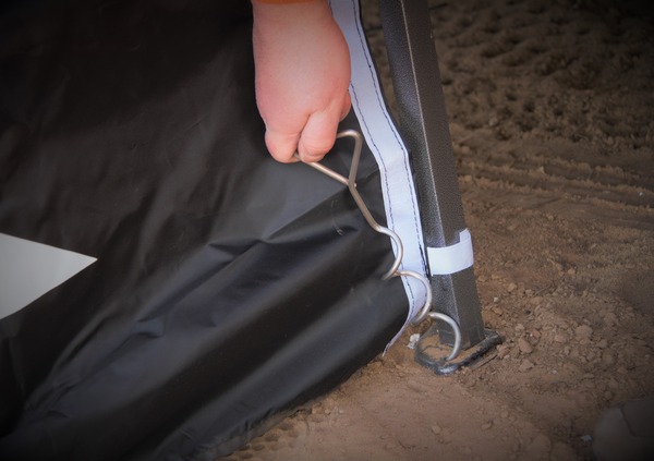 I picchetti sono comodi da fissare a mano grazie la forma a spirale, a patto di trovare un terreno morbido, altrimenti sara' quasi impossibile fissarli. In questi casi aiutano i sacchi da riempire di sabbia e collocare ai piedi del gazedo. Facili da agganciare possono aiutare nelle situazioni in cui non c'e un punto fisso al quale ancorare direttamente la struttura. Soluzione quest'ultima a nostro parere sempre preferibile.