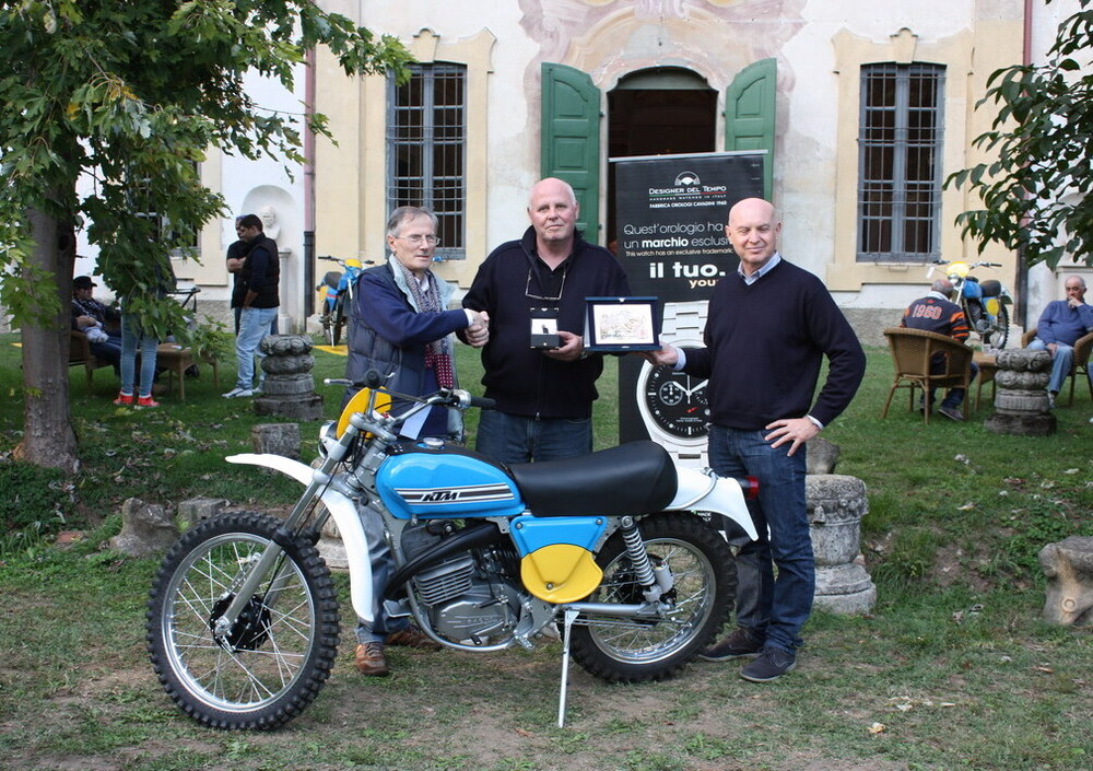 Tutti i visitatori hanno avuto la possibilità di votare la loro moto preferita, e la vincitrice è stata la KTM 125 di Maurizio, datata 1975 e premiata con una targa ricordo e un orologio “Designer del Tempo”, offerto da Fabbrica Orologi Cavadini 1960.
