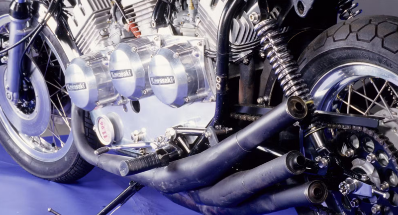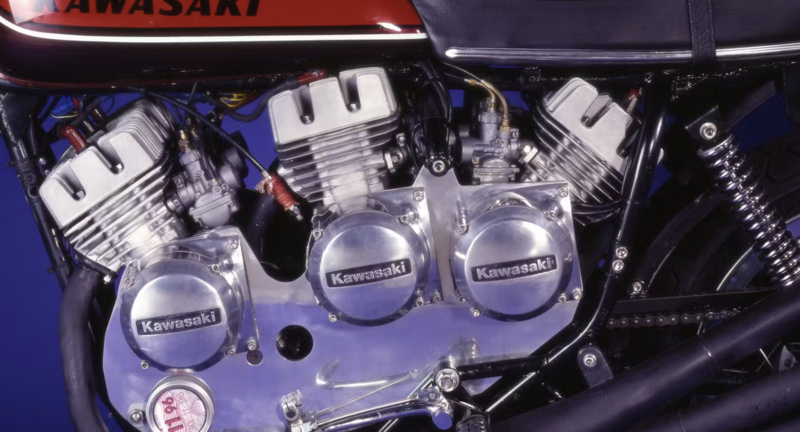 Per il suo motore triplo, Whitelock ha scelto una base altrettanto robusta: il cambio di una Kawasaki KH 500 H1 a due tempi. Questa moto, una vera leggenda degli anni '70 e tristemente celebre come "fabbricatrice di vedove" per i suoi 60 feroci cavalli a due tempi, forniva la solidità necessaria al progetto.