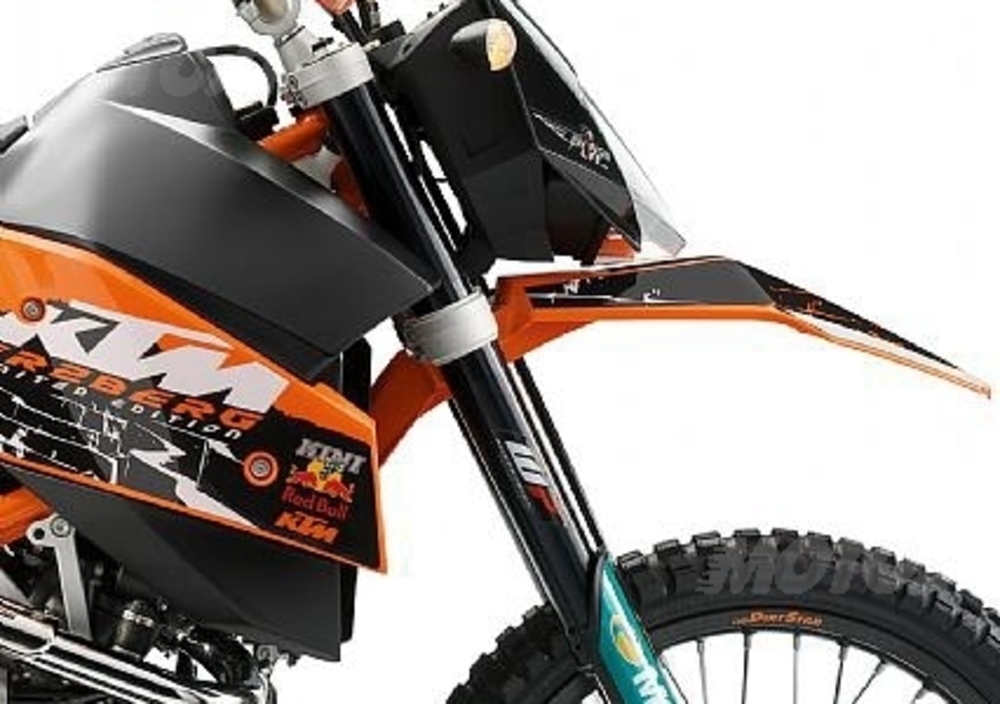 Per chi vuole guardare subito alla sostanza, e avere una moto alleggerita per affrontare la scalata dell'Erzberg a tutta velocità, questo modello in edizione limitata è fornito di serie anche con lo scarico Akrapovic super leggero, che può facilmente essere sostituito all'impianto di serie. La dotazione comprende anche i paramani di altà qualità per la massima protezione, gli esclusivi coperchi carter in carbonio, e ancora le pedane poggiapiedi regolabili per garantire ad ogni pilota la posizione di guida più confortevole, il paracolpi di protezione sui blocchetti del manubrio, e infine un set di pneumatici aggiuntivi: i super performanti Metzeler Enduro 3.