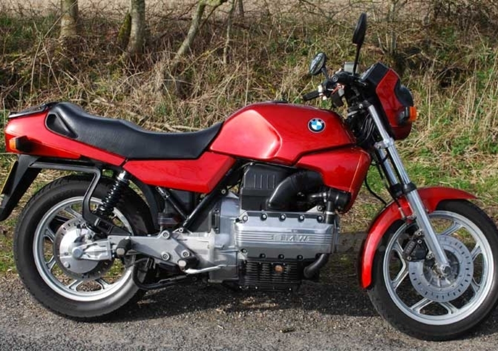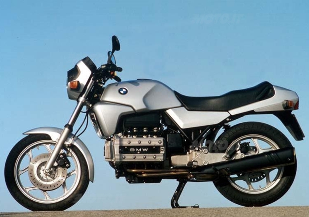Comunque sia, il progetto K100, iniziato nel 1978, verteva chiaramente proprio su quel sofisticatissimo motore a iniezione elettronica (Bosch VZ-51L, per i più pignoli), ovviamente raffreddato a liquido, accreditato di 90 cv a 8.000 con 8,7 kgm di coppia massima a 6.000. La frizione, azionata tramite cavo d'acciaio, era monodisco a secco e controratante, per annullare la famigerata coppia di rovesciamento, e gestiva un cambio a 5 marce. Mentre la trasmissione finale era ad albero cardanico sul lato destro: soluzione, quest’ultima, chiaramente facilitata proprio dalla configurazione definita “longitudinale a sogliola”. Le K100 montavano 3 freni a disco con pinze Brembo, una sospensione posteriore Monolever con ammortizzatore laterale, e pesavano rispettivamente 239, 249 e 254 kg in ordine di marcia. Ecco i prezzi delle nuove BMW K100: 9.920.000 lire per la nuda, 11.990.000 per la semicarenata e 12.360.000 per la granturismo.