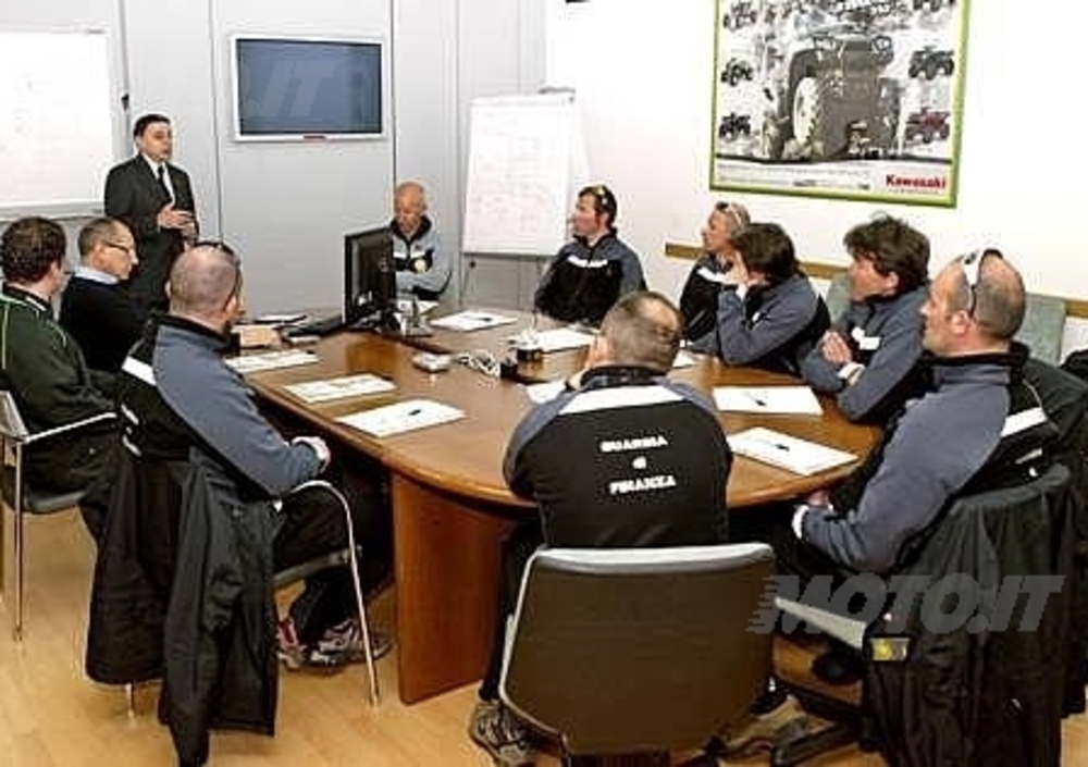 Lezioni teoriche in aula al mattino, sulla storia del veicolo fuoristrada, dell’ATV e della sua tecnica di guida sicura. Le caratteristiche peculiari e nello specifico per il modello KVF 750 assegnato, con il supporto di filmati esplicativi di guida e tecnica varia completano la parte didattica.