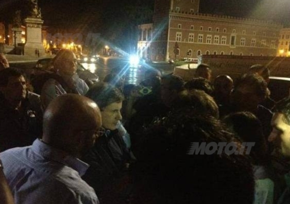 Le foto su Twitter hanno già fatto il giro del Web: ritraggono Gianni Alemanno, attuale sindaco della nostra bella capitale, in sella a una Honda Hornet nera mentre gira per Roma by night con tanto di codazzo pronto a fotografarlo e a pubblicare le foto sul popolare social network (foto postate da @LucaBaccarelli1).