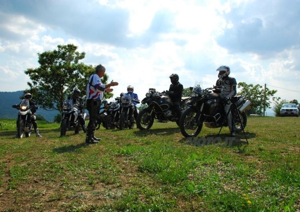 Dopo qualche ora di sudatissimi esercizi di guida ottimamente supportati dagli istruttori dell’Academy, siamo ormai pronti per strizzare le leve del GS in una serie di frenate di emergenza sulla terra dei campi pratica.