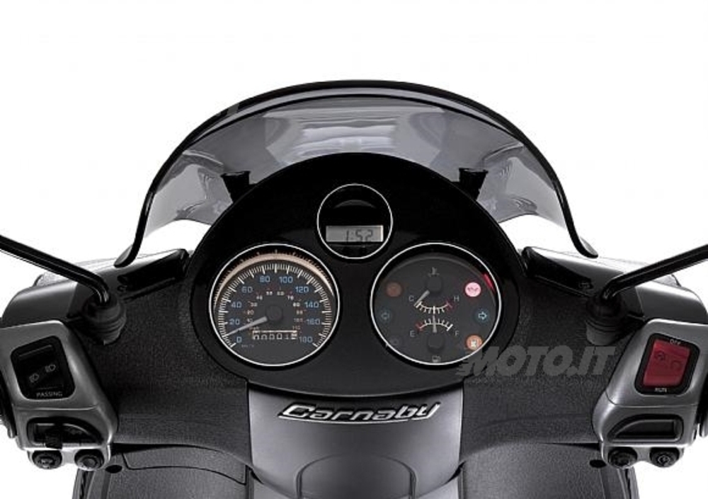 La mascherina che circonda gli strumenti è in tinta con la carrozzeria, un richiamo al mondo auto che, insieme al nuovo logo “Carnaby” cromato sul manubrio, dona eleganza alla plancia strumenti.