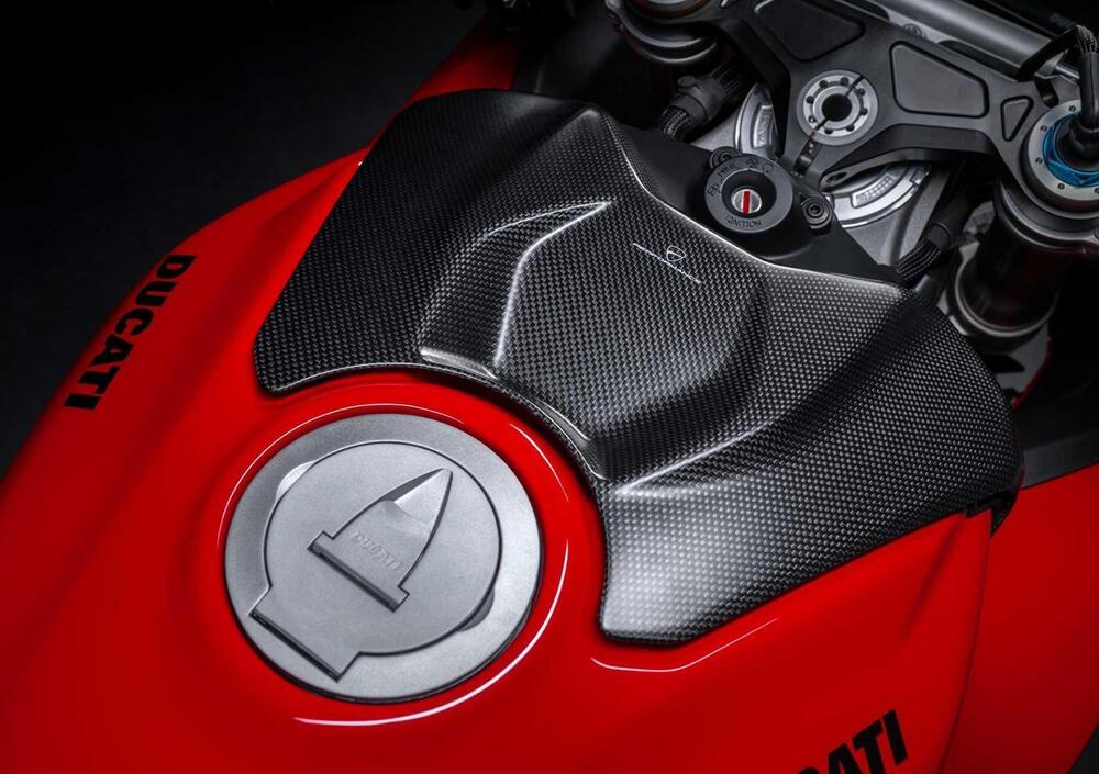 Componenti in fibra di carbonio: Vasta gamma di accessori per ridurre il peso e migliorare l'estetica, tra cui protezione per il carter, parafanghi, paratacchi, cover serbatoio, ali e condotti di raffreddamento per le pinze freno.