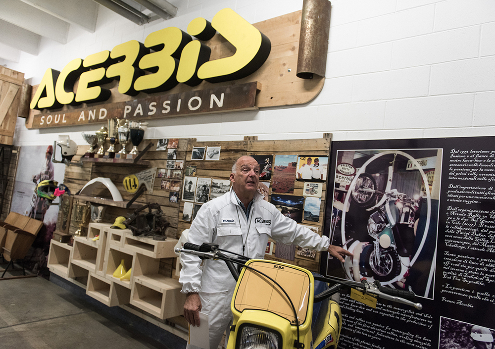 Il signor Franco Acerbis non ha bisogno di presentazioni. È un autentico vulcano dell’imprenditoria italiana: ha portato in Italia dagli USA la plastica nel mondo moto ed è diventato un re degli stampi prima e delle protezioni poi. Ma l’universo Acerbis non si ferma mai (guardate il nostro video per avere una rapida carrellata sulle attività portate avanti dall’azienda di Albino).