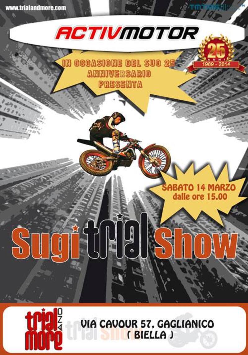 Lo spettacolo prevede anche l'esibizione "SugiTrial Show" del trialista acrobatico Sugita Van Rheenen, alle ore 15. Activ Motor vi aspetta sabato 14 a partire dalle ore 15 in via Cavour 57 a Gaglianico - Biella.