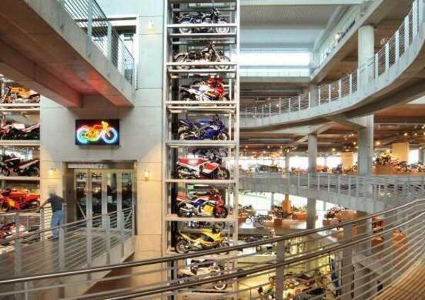 Il primo livello è occupato dall'officina di restauro ed al secondo livello si possono ammirare una cinquantina di autovetture, soprattutto da competizione, come Lotus, Porsche e Ferrari, tra cui la "156" di John Surtees, mentre i tre livelli superiori sono tutti riservati ai veicoli a due ruote: moto, scooter e ciclomotori, da competizione, prototipi o di normale produzione.