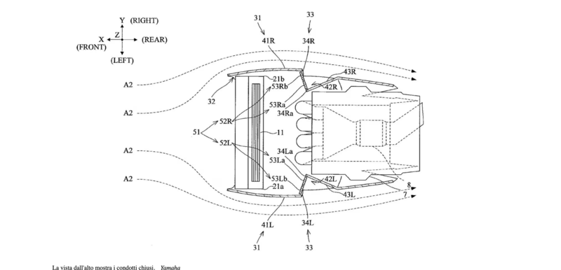 Come segnalato dai colleghi di Cycleworld, Yamaha ha depositato un brevetto per una R1 con aerodinamica attiva. La nuova carena ha prese d'aria che si aprono o si chiudono automaticamente per ottimizzare la resistenza e il raffreddamento, adattandosi a parametri come la velocità e la temperatura, sistema adottato da anni in campo automobilistico ma mai utilizzato su una due ruote.