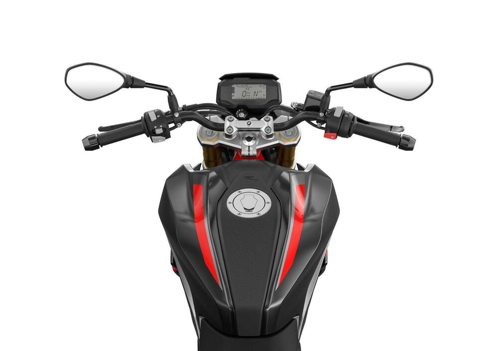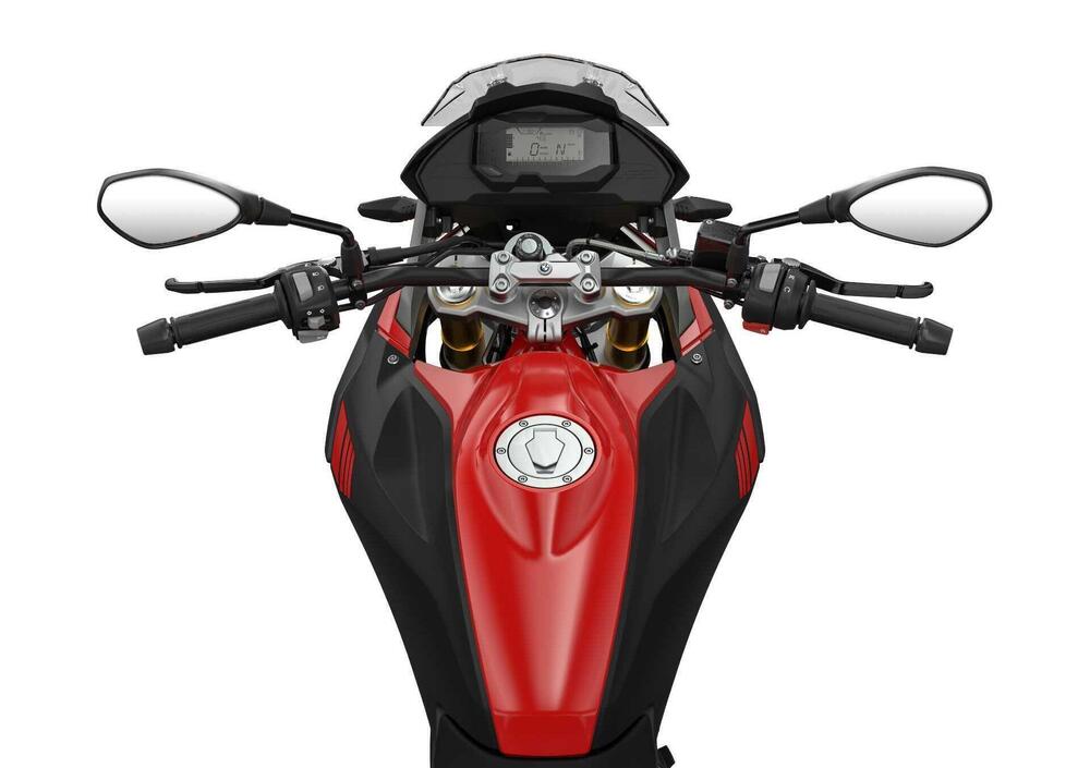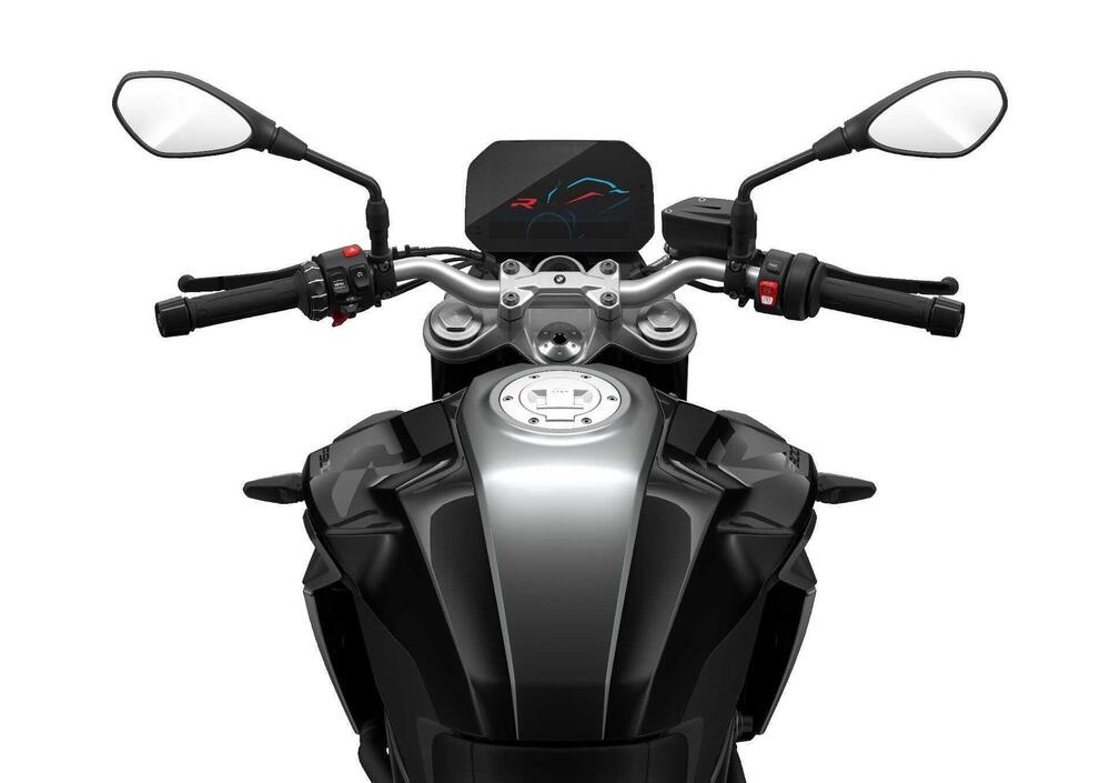 - Versione Basic e Triple Black: pannelli laterali Blackstorm metallizzato / Coperchio ruota anteriore, coperchio centrale serbatoio Mineralgrey metallizzato opaco / Sella nera / Motore Avus Black metallizzato opaco / Ruote Night Black uni / Tubo forcella nero.