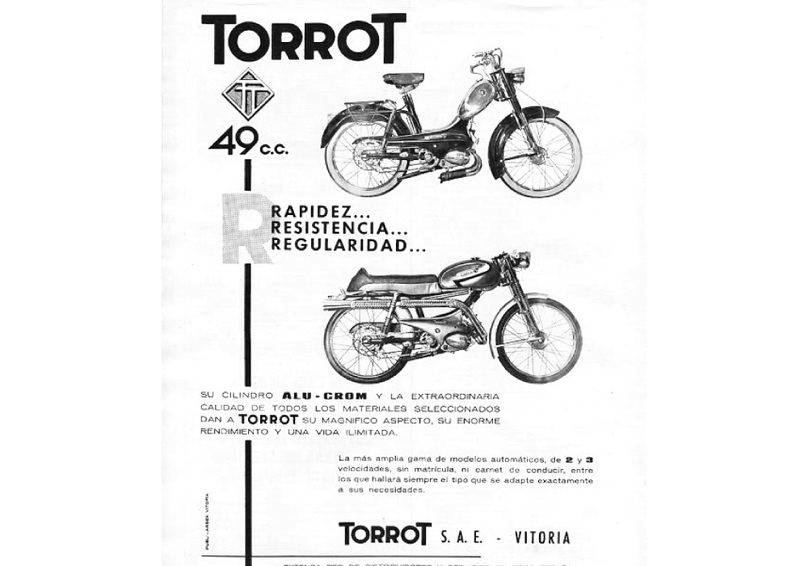 Il marchio Torrot è stato fondato nel 1948 a Vitoria nella Comunità Autonoma dei Paesi Baschi dal visionario imprenditore Don Luis Iriondo, con l’obiettivo di costruire biciclette e moto leggere tipo le attuali urban utility.