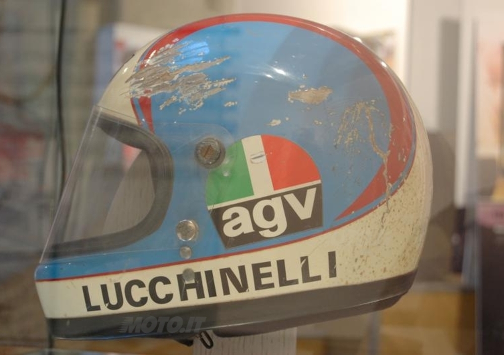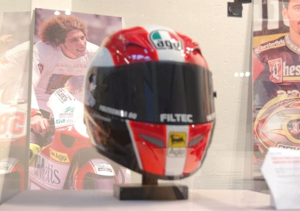 Grandi pannelli fotografici che raccontano una storia lunga sessant’anni passando soprattutto attraverso i piloti: da Ago a Lauda, da Piquet a Simoncelli, da Peterson fino a Valentino. Ci sono i caschi originali, le tute, alcune moto importanti, e poi documenti e fotografie messi a disposizione dagli eredi e dalla Dainese, che nel 2007 ha rilevato l’AGV. Si scopre che Gino, e la moglie Luciana di fianco a lui, hanno vissuto una vita speciale tra la fabbrica, le moto, la F1, l’azienda vinicola e l’Alessandria calcio. Perché erano una coppia molto vivace, piena di interessi. C’è da vedere in particolare il casco di Ronnie Peterson, pilota di F1 che morì pochi giorni dopo l’incidente di Monza alla prima variante (1978), quello di Steve Baker nel mondiale 750 del ’77 con l’OW 31, il casco di Nelson Piquet campione dell’87; quest’ultimo è il famoso modello X-999, il primo con la calotta completamente in kevlar della Dupont, e che pesava soltanto 1250 grammi.