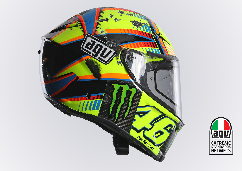 Grazie alle tecnologie AGV Extreme Standards, Valentino Rossi non ha riportato alcun trauma e ha potuto prendere parte al successivo Gran Premio di Motegi salendo nuovamente sul podio assieme ad AGV e al Pista GP.