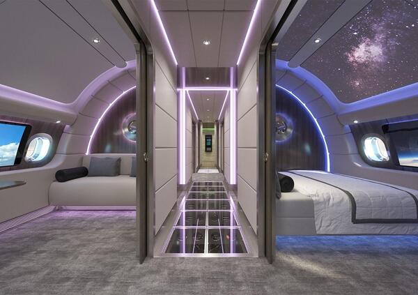 Questo spazio è stato progettato in collaborazione con Brabus ed è situato nella parte posteriore del ponte inferiore: può essere visto dall'alto grazie al pavimento di vetro.