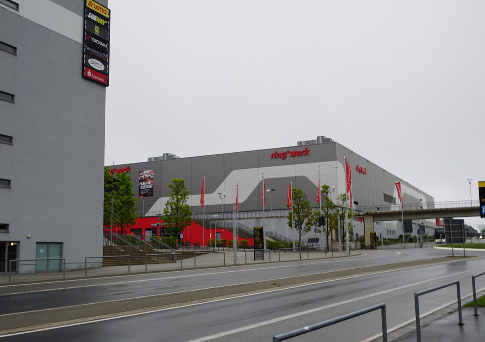 Sbarcati in Germania sotto a un vero e proprio diluvio, raggiungiamo la sede di Wunderlich, azienda che visitiamo con grande piacere. Vista la cura e l’organizzazione di ogni singolo settore, capiamo il perché della qualità degli accessori prodotti, e i risultati si possono apprezzare sia guardando le moto in esposizione nel negozio annesso alla fabbrica, sia osservando quelle dei clienti presenti nell’officina. Terminata la visita, ci spostiamo verso il circuito, e andiamo a dare un’occhiata da fuori, a quello che è considerato uno dei tracciati più impegnativi del mondo. Veniamo colpiti, io e Matteo, dalle variazioni di pendenza del tracciato: quelle che nei video sembrano salite e discese di modesta entità dal vivo si dimostrano dei veri e propri toboga! Non per niente il giorno precedente, durante la famosa 24h, una grandinata ha letteralmente trasformato il nastro d’asfalto in una pista da sci, con la conseguenza che alcune auto si sono dovute fermare sul tracciato, mentre altre scivolavano inesorabilmente senza controllo giù dai declivi!
