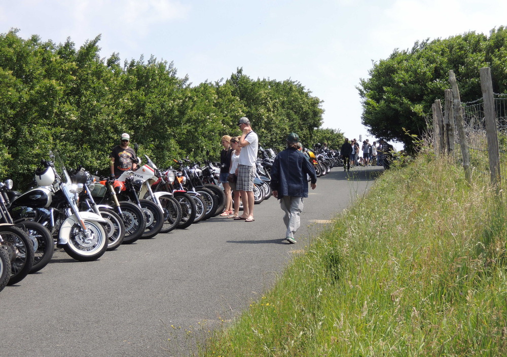 Un aspetto fondamentale della filosofia che caratterizza il Wheels and Waves è il viaggio e i Southsiders hanno studiato degli itinerari appositamente per l’occasione, munendo i presenti di una mappa con i tour e i diversi chilometraggi. E così, già nella giornata di venerdì, siamo andati tutti in Spagna per assistere all’evento più importante: la Punk’s Peak Race, in cima al monte Jeizkibel, a 450 m di altezza sopra il mare. Nonostante la strada non proprio entusiasmante, il panorama che troviamo all’arrivo è mozzafiato. Riusciamo a vedere quella che dovrebbe essere la città di Irun e l’oceano Atlantico. La quiete della montagna viene così spezzata dal susseguirsi di moto, anche se i cavalli e le mucche al pascolo non ne hanno risentito particolarmente.