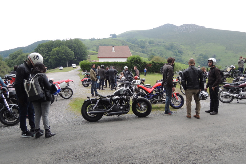 Riprendiamo la strada maestra e ci rechiamo verso le stradine di montagna che pensavamo di aver fatto all’andata, ovviamente sbagliando. Mentre sostavamo vicino a un ruscello, cercando di capire dove dovevamo andare, è passato un susseguirsi continuo di moto, rassicurandoci che eravamo sulla strada giusta. Li abbiamo quindi seguiti e insieme a loro ci siamo fermati ad un piccolo passo, dove tutti hanno parcheggiato per riposarsi e fare due chiacchiere. Si riparte comunque velocemente, ripassando per Sare e a Saint Pèe e poi di nuovo a Biarritz al Villaggio del Faro.