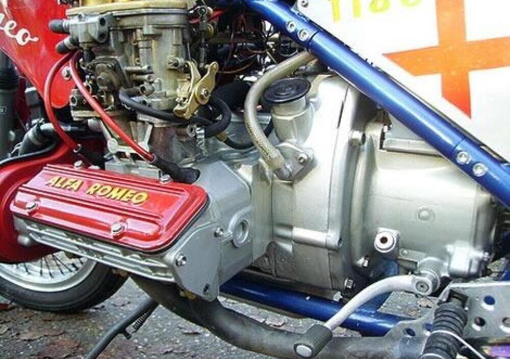 Cominciamo con la “Alfetto”. Il motore è il quattro cilindri boxer noto anche sulla “33” e la realizzazione – che risale ad alcuni anni fa – è stata resa nota da un appassionato belga nel 2007.