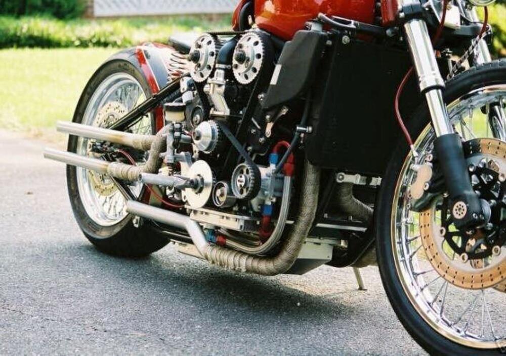 Si chiama “Alfabeast” la creazione dell'americano Chris Barber. A metà strada fra una cruiser e un chopper monta un V6 Alfa Romeo da 2,5 litri di cilindrata e con testate in alluminio. Il cambio a quattro marce, separato, è stato prelevato da una Harley-Davidson, mentre all'alimentazione provvedono dei carburatori weber. Da notare che l'avviamento è a pedivella.