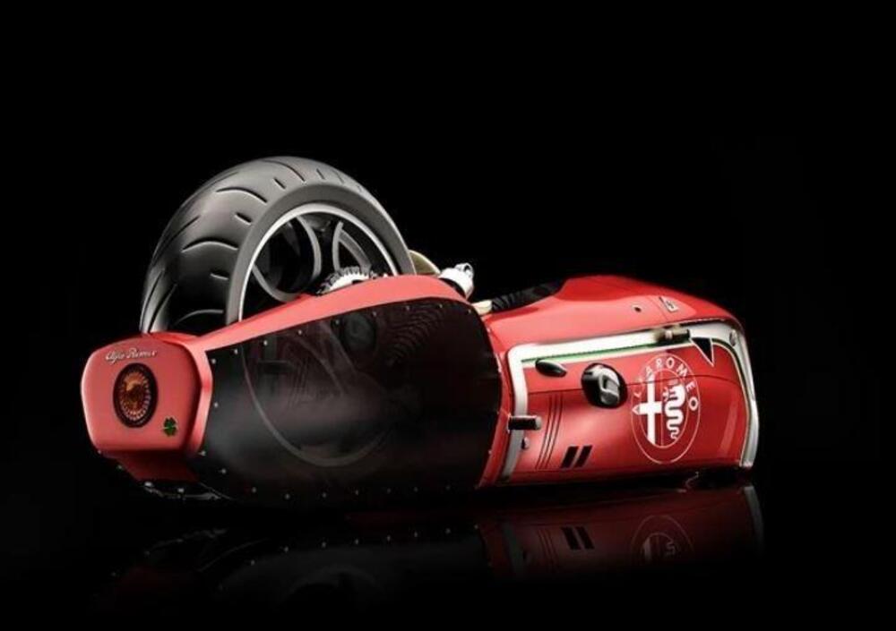 Al designer turco Mehmet Doruk Erdem si deve invece la Alfa Romeo “Spirito”. Questo concept di veicolo e di stile guarda agli streamliner da record cercando di coniugare il mondo moto con gli stilemi delle Alfa da competizione.