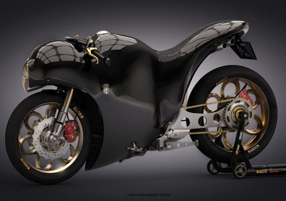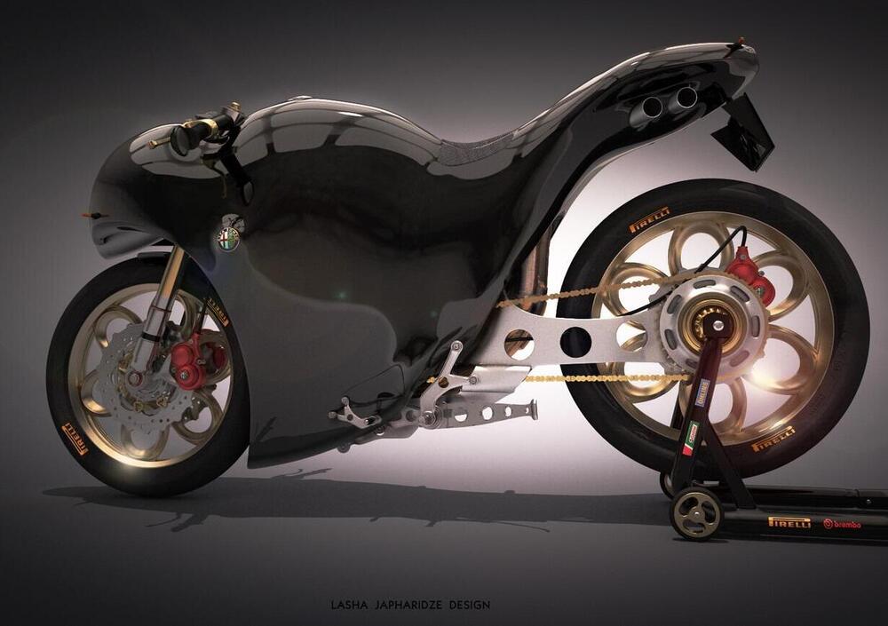 Lasha Japaridze è un giovane designer georgiano. La sua moto Alfa Romeo, generata digitalmente, si chiama “il Ragazzo”. Ha scelto un abito dalle forme antropomorfe che avvolge l'intero veicolo (difficile trovare però un legame con il marchio milanese), che ha ruote dal disegno automobilistico e un forcellone monobraccio di - diciamo così - ardita costruzione. Il motore dovrebbe essere un due cilindri.