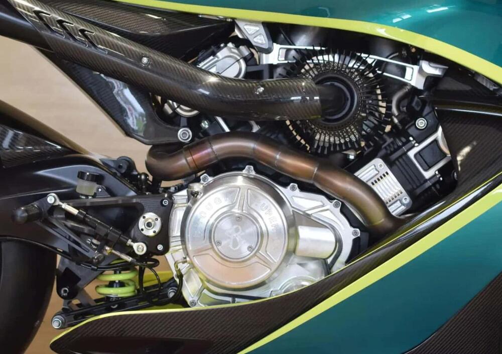 Linea futurista disegnata su una carena in fibra di carbonio attorno ad un telaio in lega di alluminio e un motore bicilindrico a V da 997cc completo di turbocompressore Garret. La potenza è a dir poco esuberante, ben 225cv di potenza massima per un oggetto che però sembra più destinato ad una collezione privata o ad un museo piuttosto che ad uno smanettone da prove libere e pareggiamenti. Una moto decisamente particolare che, in questo caso è il numero 8 degli 88 costruiti e destinati ad un pubblico davvero selezionato.