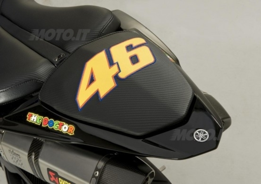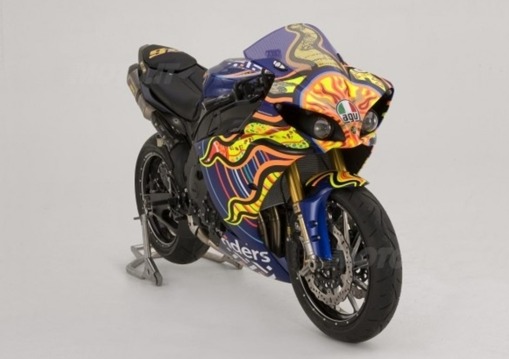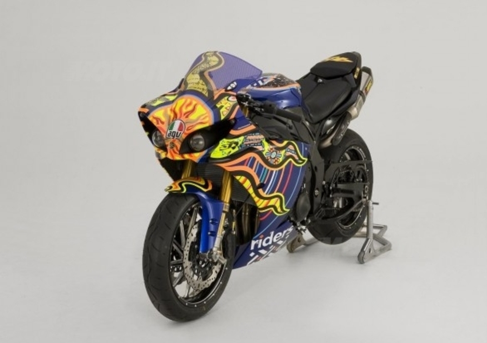 Questa moto tributo è stata personalmente autografata da Valentino Rossi sul serbatoio durante il fine settimana scorso al GP di Laguna Seca.