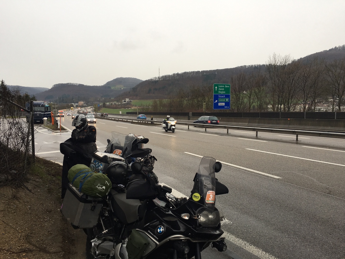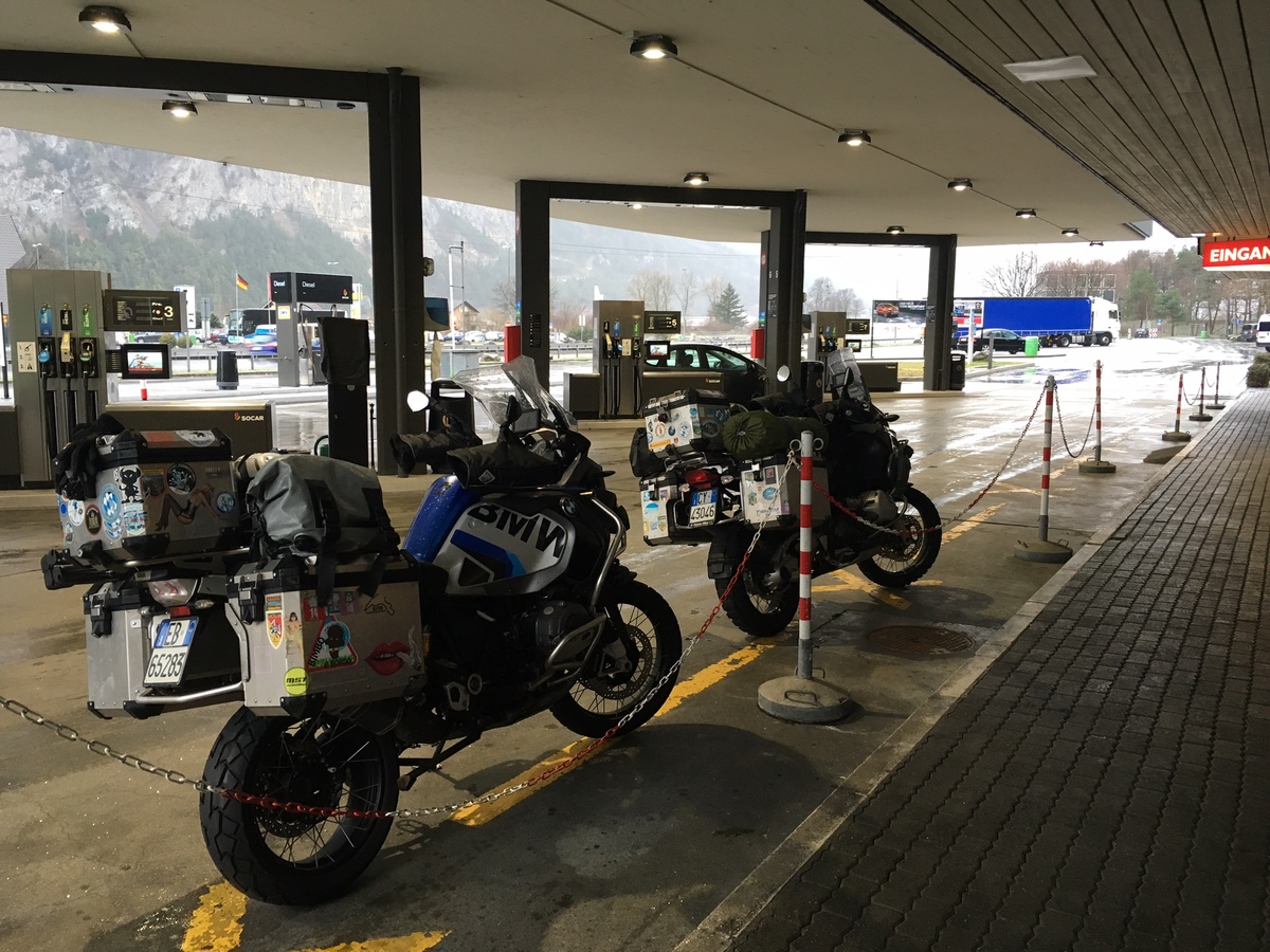 Dieci minuti di sosta in autogrill, ne abbiamo bisogno! Nell'ultima ora è successo di tutto, pioggia, neve, poi ancora pioggia e come se non bastasse, una bella pattuglia della polizia Svizzera in vena di verbale, fortunatamente scampato! Ancora 350 km alla destinazione!