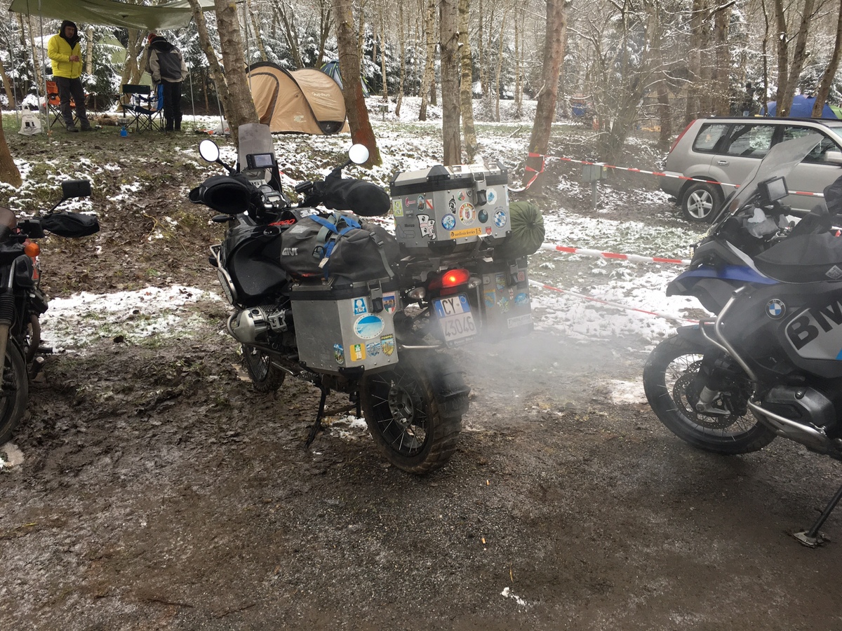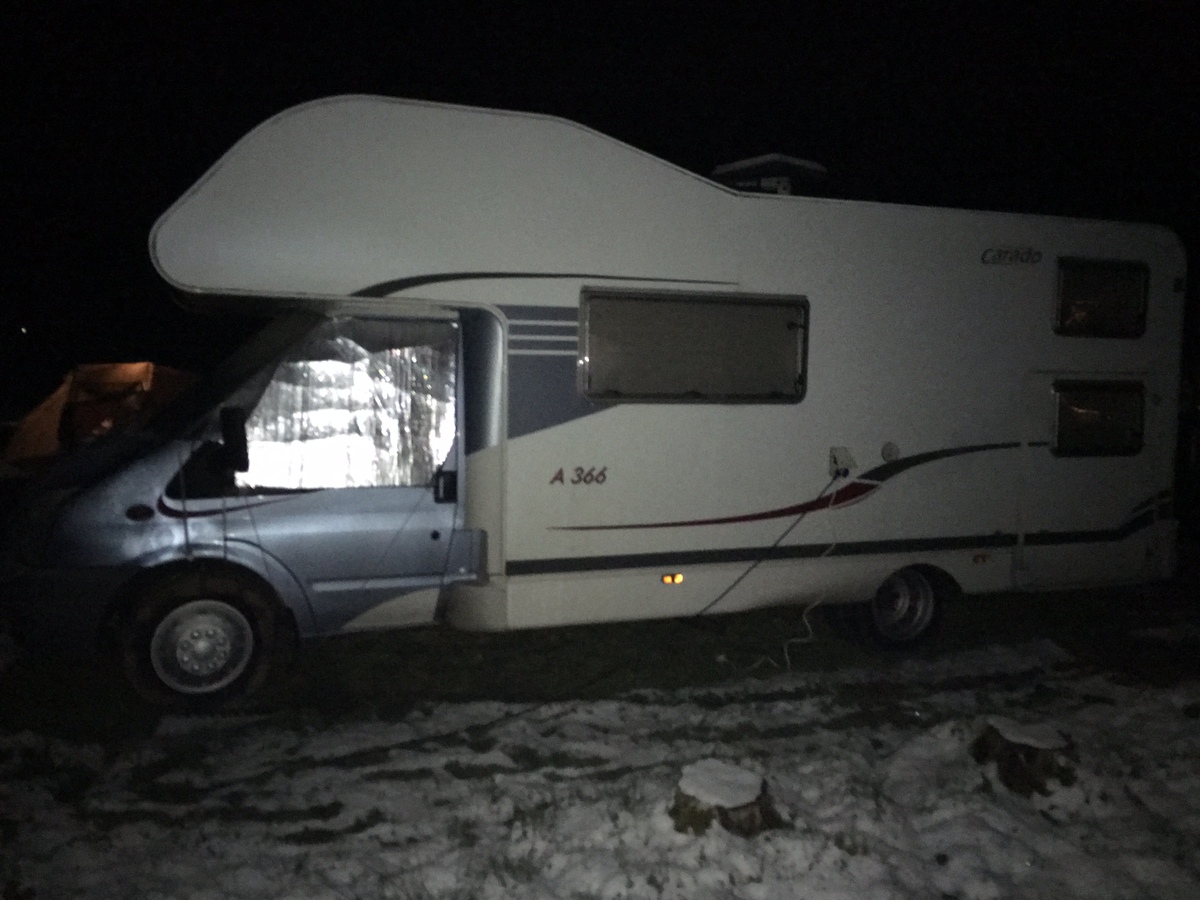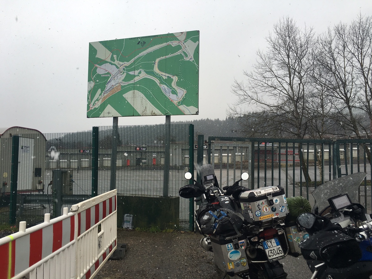 Ancora 180 km e saremo al ring, qualche fiocco di neve ci accompagna da qualche chilometro ma le strade sono pulite e sicure. Non vediamo l'ora di arrivare per montare la tenda e riposare.