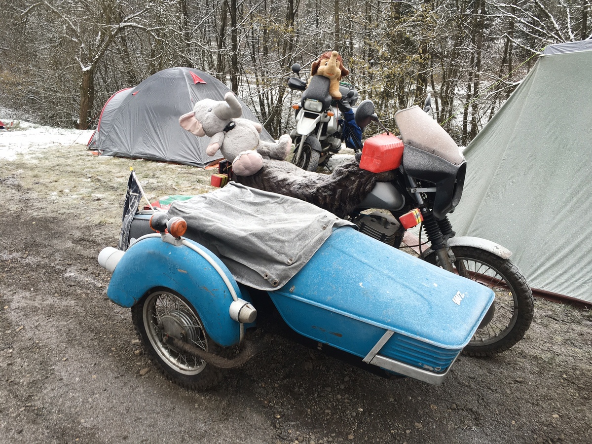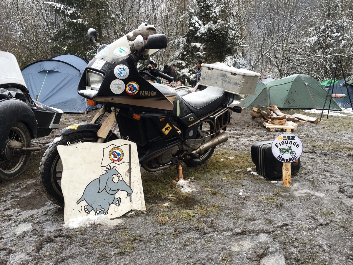 Questa mattina regna uno strano silenzio all'Altes Elefantentreffen, a parte un bicilindrico che gira annoiato al minimo da ormai una decina di minuti abbondanti ed il nostro vicino di tenda che russa invece come un monocilindrico al limitatore!