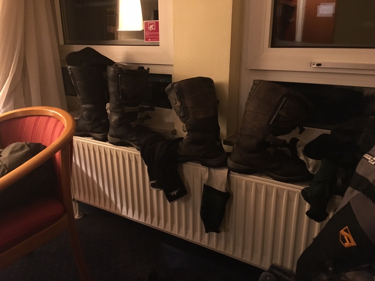 Alcune volte il racconto della giornata di viaggio lo si può intuire già solo guardando le cose appoggiate sul termosifone!