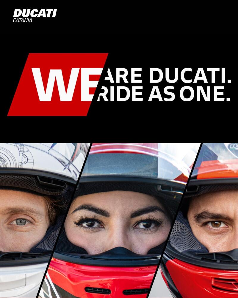 Il We Ride As One si terrà anche a Catania, con un itineraio che, partendo dalla Concessionaria Ducati Catania, si snoderà prima verso l'Etna e successivamente farà tappa al Castello Ursino nel cuore del centro storico della Città siciliana. Per i siciliani, o per gli appassionati ducatisti di passaggio nella Sicilia Orientale, un itinerario certamente piacevole e ricco di panorami e scorci che potranno essere oggetto delle foto e dei video che saranno condivisi sui social per raccontare l'evento o che semplicemente faranno parte del bagaglio di immagini che ognuno si porterà a casa al termine del We Ride As One.