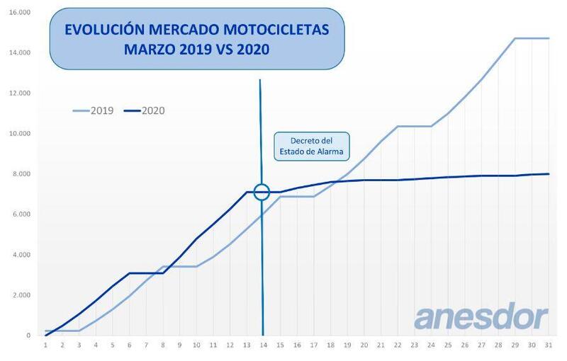 I dati di mercato diffusi dall'associazione spagnola che riunisce le imprese del mondo due ruote mostrano come fino al 14 marzo, prima della crisi sanitaria che ha imposto i blocchi delle attività, le vendite di moto e scooter avevano segnato un +37,8%.
