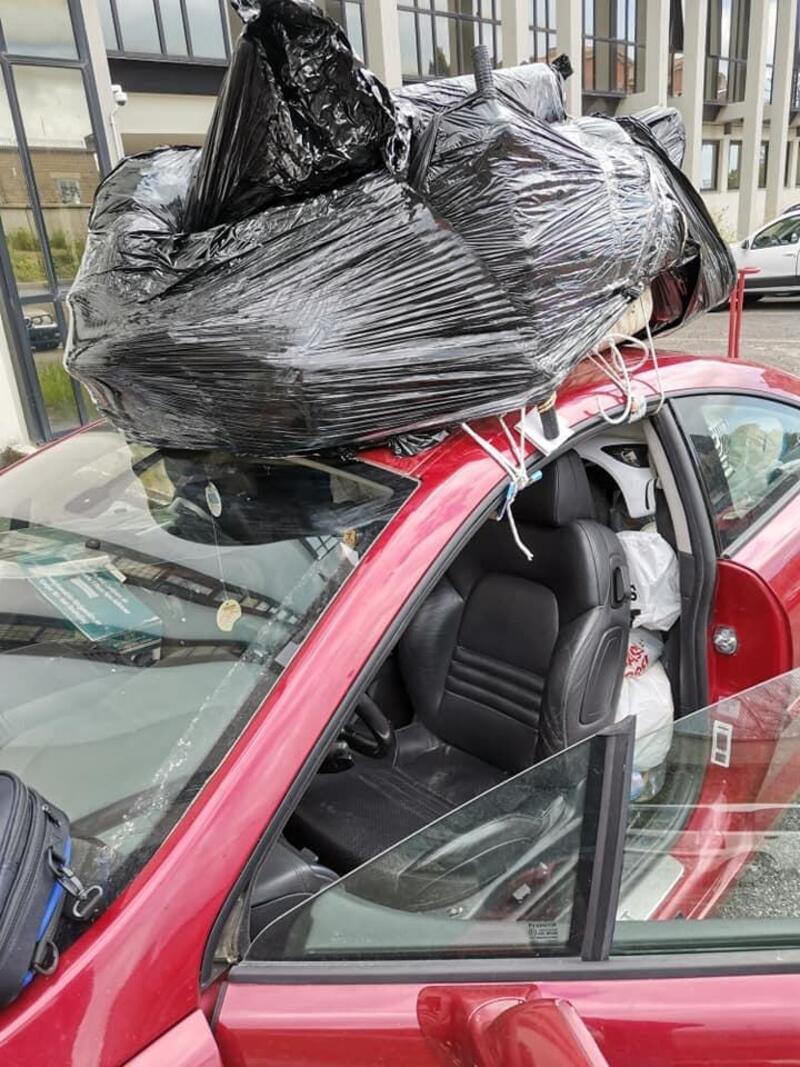 Un trasloco home-edition con sorpresa finale. È quanto successo ad Albano Laziale dove è stata fermata dalla polizia una Peugeot completamente colma di oggetti. Una bici, un’automobile per bambini, valigie e dei mobili, a destare però l’attenzione delle Forze dell’Ordine è stato un ingombrante saccone nero legato sopra il tettuccio. Una volta aperto, la surreale scoperta. Uno Scarabeo completamente smontato vi era comodamente adagiato sopra la coupè.