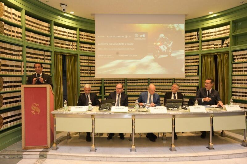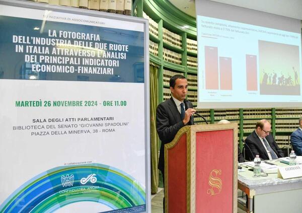 Roma, 26 Novembre. Ancma e Eicma hanno portato a Palazzo una mattina di bel tempo. Nessun dei due meteorologo o climatologo, Paolo Magri, Vice Presidente dell’Associazione Nazionale Ciclo Motociclo Accessori e AD del “Salone” (serve specificare?) e Mariano Roman, neo Presidente di ANCMA, hanno semplicemente aperto la finestra sulla realtà del Mondo italiano delle 2 Ruote. E finalmente, nelle stanze di solito sature di quantomeno pensierosa aria di chiuso, a Palazzo della Minerva nella Sala degli Atti Parlamentari del Senato le rappresentanze delle Politica hanno potuto respirare la corroborante aria fresca di una realtà che, forse, non conoscevano. Per far questo ANCMA ha commissionato agli specialisti di Bain & Company uno studio sulla filiera italiana delle 2 Ruote, Moto e Bici. Il documento è qui in allegato.