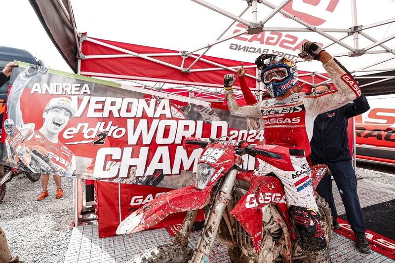Verona ha vinto ancora, è Campione del Mondo Enduro2, quella che era la classe regina, ma prima il venticinquenne fuoriclasse italiano è stato Mondiale E1 nel 2021 e 2022, e assoluto EnduroGP nel 2022. Come “anteprima” ai Mondiali con i “grandi”, Andrea Verona si era e ci aveva offerto i Titoli Youth, 2017, e Junior, 2019. L’ufficiale GasGas, insomma, è il numero 1 assoluto dell’Enduro Italiano della cosiddetta era contemporanea. Verona, che era arrivato al Mondiale con la “piccola” 250 4T, ha corso e vinto anche in questa stagione con la “media” 350 “ispano-austriaca”.