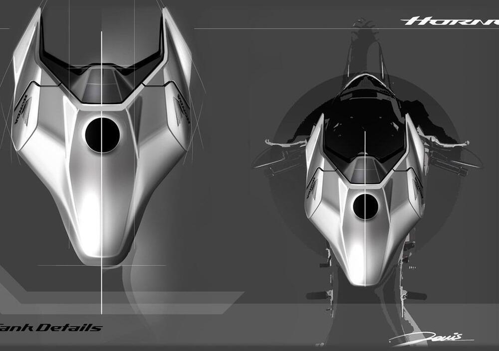 "La prima idea che ho avuto per la Hornet - ha spiegato Dovis -, considerando che il design di una moto naked parte dal serbatoio, è partita dall’insetto Hornet: il calabrone, che ha delle ali. Dal connubio con il mondo delle corse, che usa le alette e al rimando naturale del calabrone ho pensato a questa forma di serbatoio che richiamasse queste ali, quindi dinamicizzare la forma in una via molto semplice però efficace per questo prodotto".