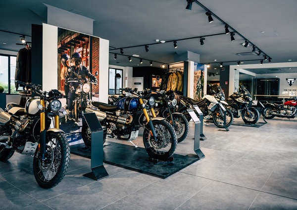 Perché è il contorno, oramai, a fare sempre più la differenza: assistenza post vendita, officina, ma anche accessori, abbigliamento. E qui si torna al punto di partenza: com’è fatto un concessionario di moto, nel 2019? È propio come la nuova sede di Triumph Milano, appunto. “Svelata” con un evento in grande stile la scorsa settimana, è il nuovo flagship store della Casa inglese in Italia e, addirittura, il concessionario Triumph più grande d’Europa. Cosa c’è al suo interno? Tanto per cominciare un sacco di spazio: oltre 3.000 metri quadri dedicati all’esposizione di tutti i modelli del brand di Hinckley. Tutto intorno, i mille mila accessori disponibili nel catalogo Triumph e una vasta scelta di capi d’abbigliamento recanti lo stesso marchio.