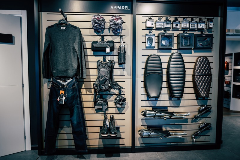 Sotto allo show-room, l’officina: uno spazio grande quanto il piano di sopra dedicato alla cura delle moto - che detta così sembra un SPA per moto, ma che, diciamo, in questo caso è piuttosto una lussuosissima clinica privata. Ma non è tutto. Far parte del mondo Triumph significa essere sempre più partecipi di un vero e proprio stile di vita. C’è la moto ok, una moto, quella moto, ma c’è anche tutto ciò che le ruota attorno. E così, se tra gli ambienti dello show-room trovano posto i capi ufficiali della linea Triumph Motorcycles, attraverso lo stesso concessionario è possibile accedere al South Garage Cafè & Bistrot, che si avvale della consulenza del critico enogastronomico Paolo Vizzari, e allo store che farà la gioia degli amanti dei più ricercati fra i capi casual legati a un certo immaginario. Dal denim prodotto in Giappone, alle immancabili Red-Wing, passando per i caschi DMD, Triumph Milano mostra di saper includere sapientemente al suo interno anche chi, i motociclisti, li veste nel tempo libero, rendendo le porte della sua sede di Via Eugenio Brizi 4, un punto di passaggio sempre più frequentato da quanti fanno, della moto, l’epicentro delle proprie passioni.