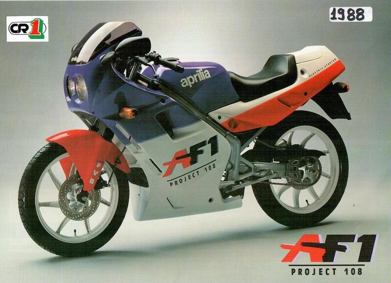 Curiosamente, la nuova AF1 50 ’88 adotta il nome della AF1 125 ’87, ovvero Project 108. Un motivo probabilmente da ricercarsi nella volontà del marketing Aprilia di voler sottolineare l’adozione del forcellone monobraccio (chiamato appunto “progetto 108) che per la prima volta viene adottato su un cinquantino.