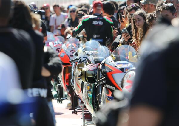 Le immagini dei grandi campioni di Aprilia sul rettilineo del MWC in sella alle RSV4 allestite con i fumogeni a rappresentare i colori della bandiera italiana hanno fatto il giro del mondo. Era un messaggio di augurio a conclusione dell’edizione 2021 di Aprilia All Stars, chiusa al pubblico per la situazione sanitaria di allora. La promessa di ritrovarsi nel 2022 a porte aperte è mantenuta.