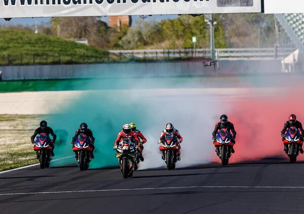 In pista anche le moto del Campionato italiano Aprilia Sport Production 250 e infine, guidata da Espargaró, Viñales e Savadori, la esclusiva Tuono X: la naked di serie più leggera e potente.