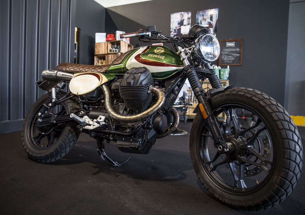 Nello stand Moto Guzzi sono infine esposte alcune special interpretate e modificate da alcuni tra i più famosi preparatori: è il caso della V7 realizzata da South Garage.